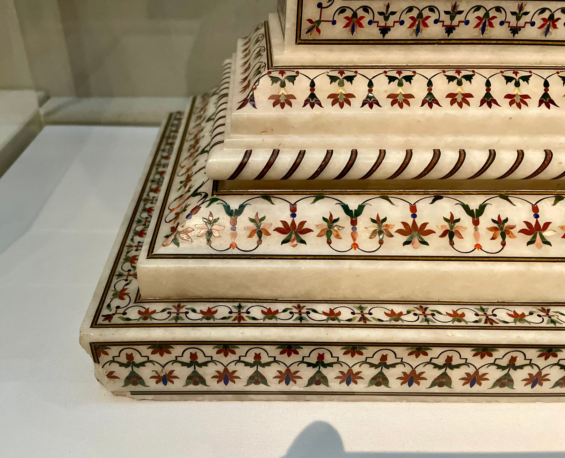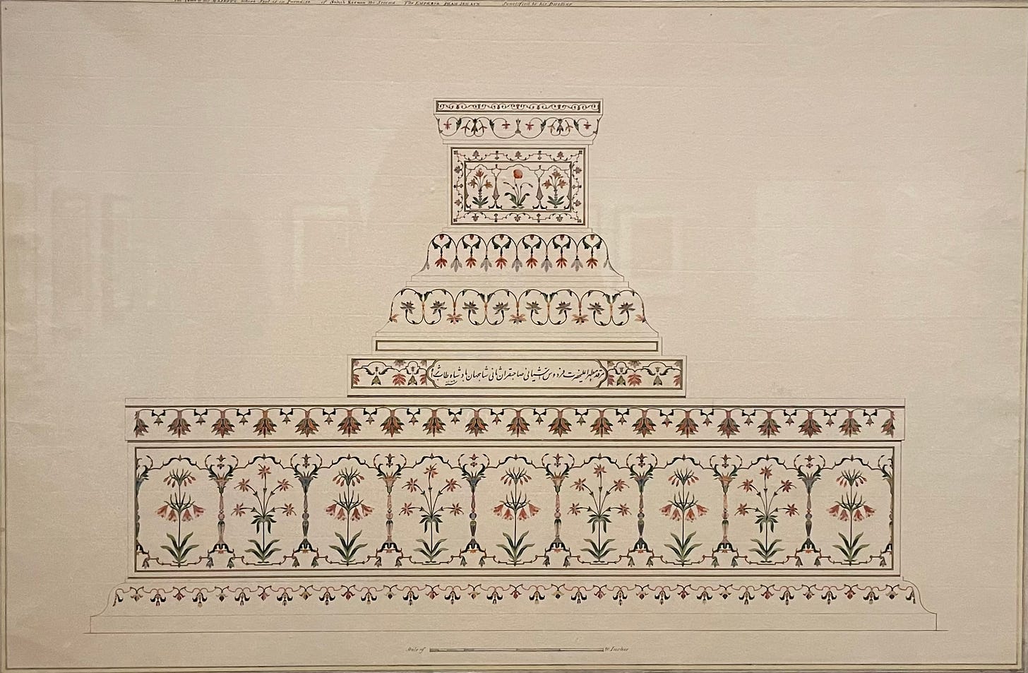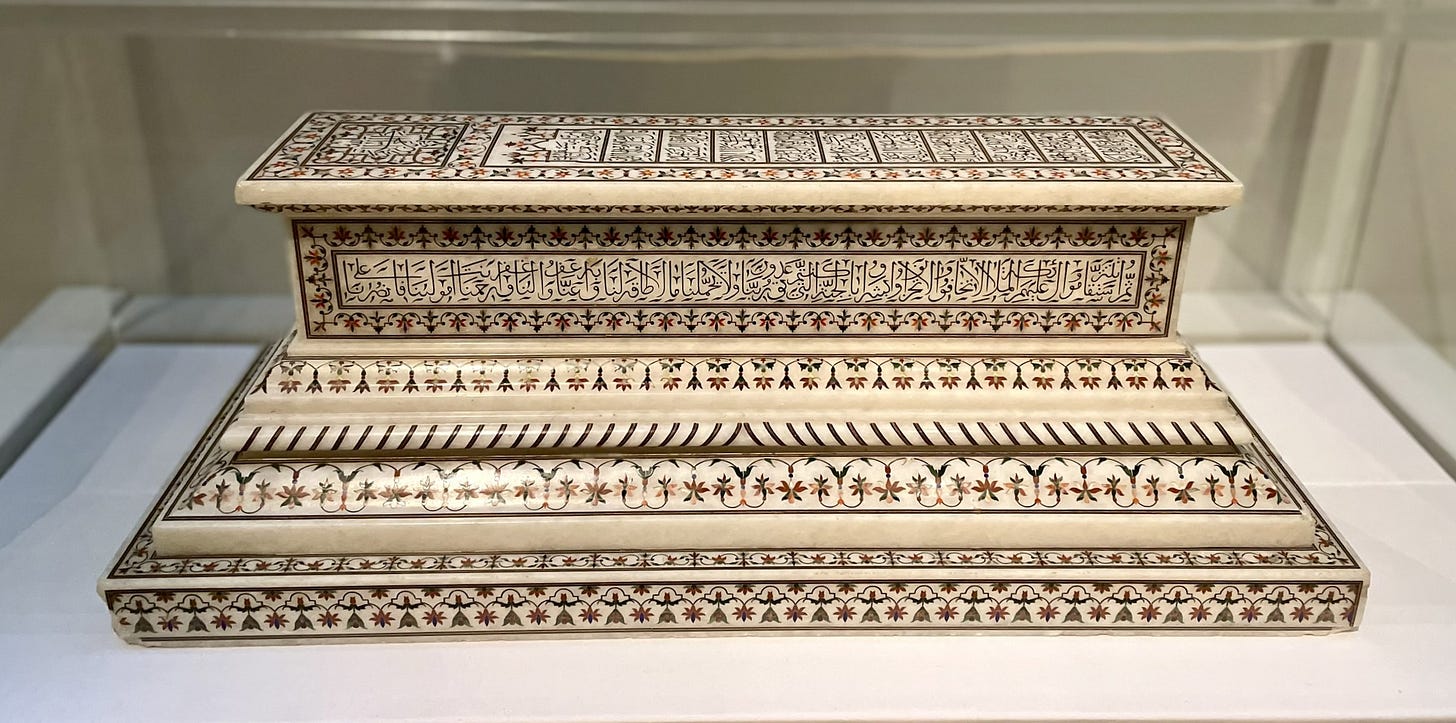 The last section is Shah Jahan, his court was lavish in the arts and he commissioned one piece of Mughal Art we do all recognise, even if it is due in the main to the British love affair with Indian food, the Taj Mahal of course. The Gallery Tart has been lucky enough to visit the Taj Mahal and it really is a breathtaking masterpiece, it was interesting to be able to situate it within the cultural contexts it was made through this exhibition. The labelling tells us that the floral decorative style of the Taj Mahal was influential across the Mughal empire and this can be seen in a variety of decorative items in this section. What also stands out for me in particular is the obvious influence on the Arts and Crafts movement, the flattened botanical styles, the mathematical repetition, the rich colours were all to emerge two centuries later in the Art of William Morris and friends!