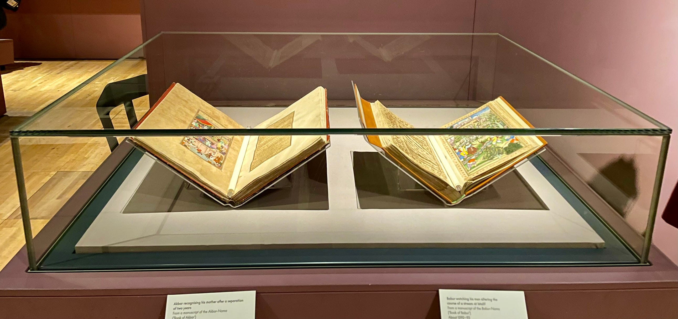 I’m going to profess very little knowledge of the art of the Mughal courts and that’s fine, that, after all, is the point of visiting exhibitions and learning about new things. The golden age of Mughal Art is described as being 1580-1650, it starts under Akbar who commissioned many workshops to create lavish artworks. One of the most important was the House of Books where illuminated Mughal Manuscripts were produced, several books with water colour illustrations are on display detailing well know literature and current events.